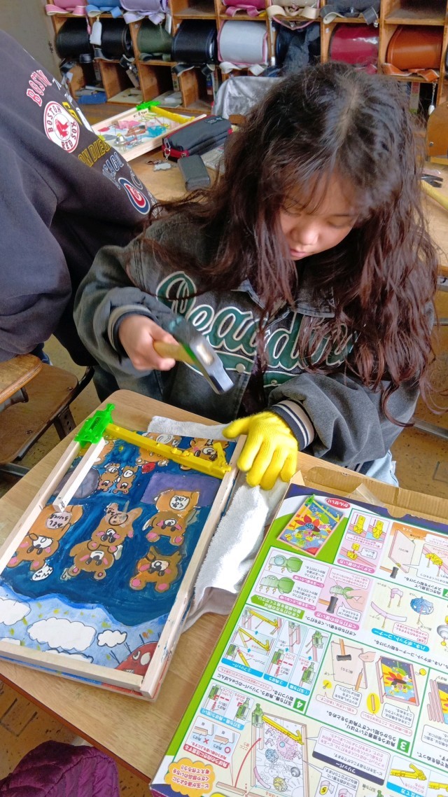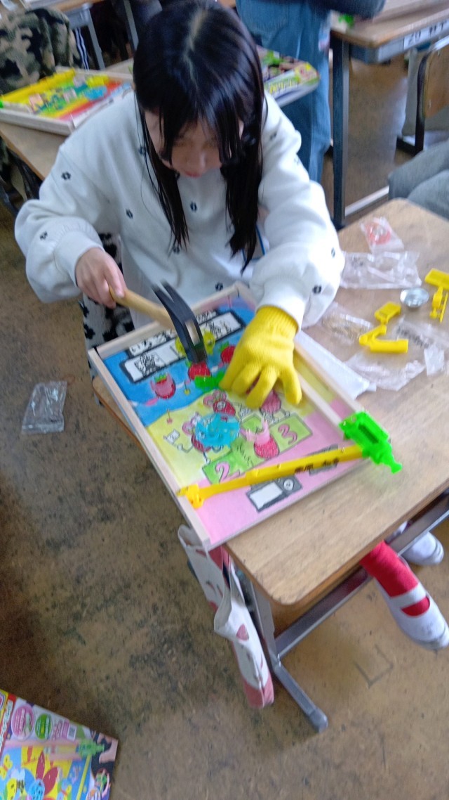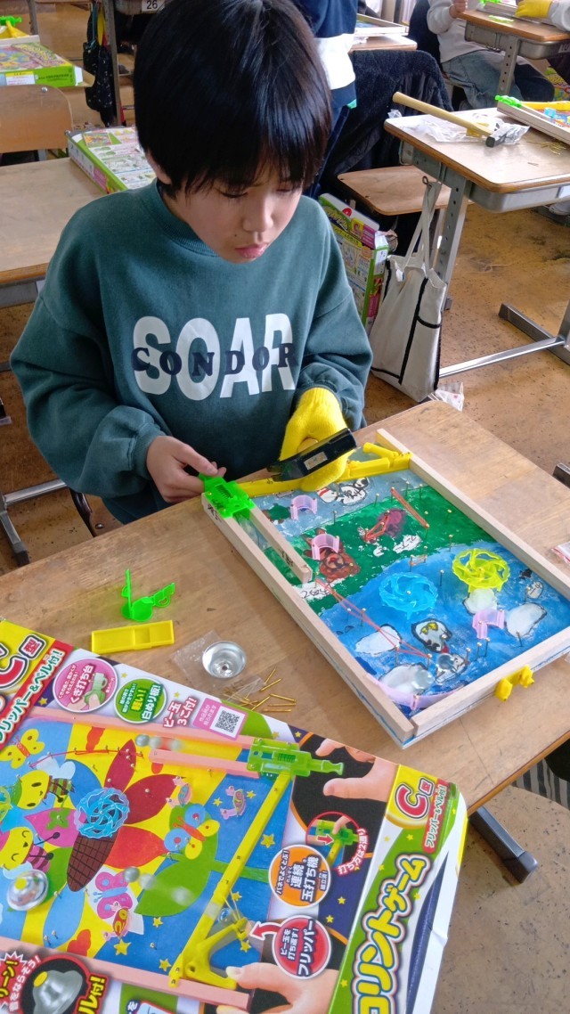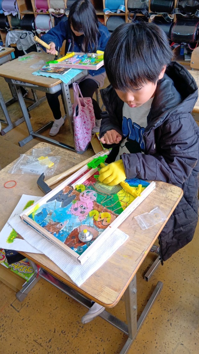 何度もビー玉を弾きながら、釘や飾りの位置を決めていくのが楽しそうでした。