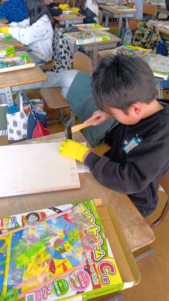 板に釘を打ちつけ、ビー玉が通るコースを作っていきます。