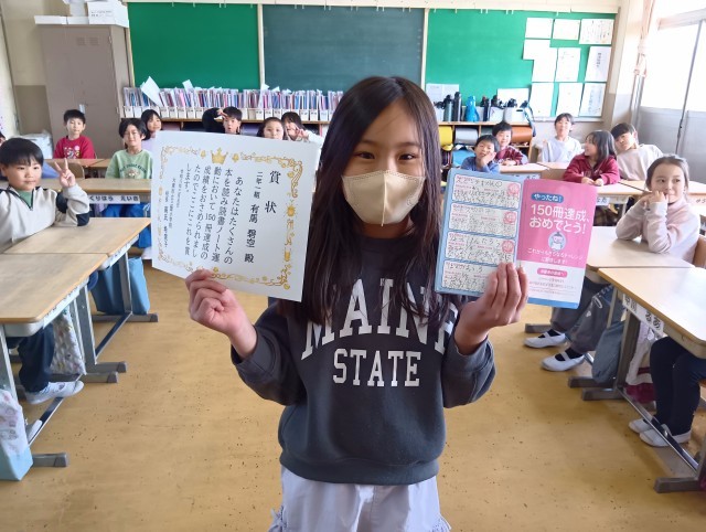 「100冊達成しました。シール貼ってください。」と訪ねて来てくれたのは、1年生でした。