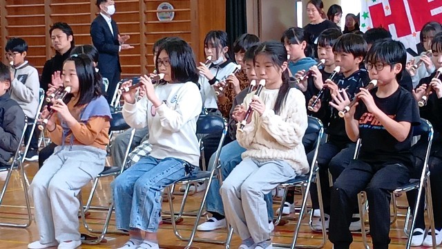 5年生のリコーダー奏「威風堂々」で、卒業生が入場します。