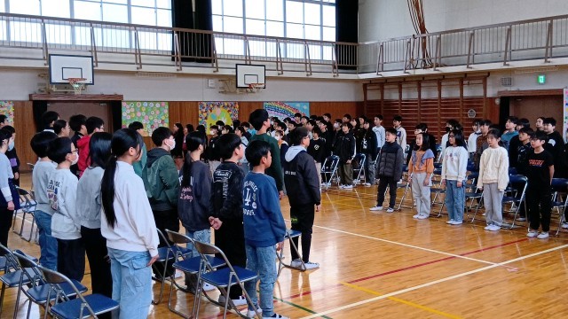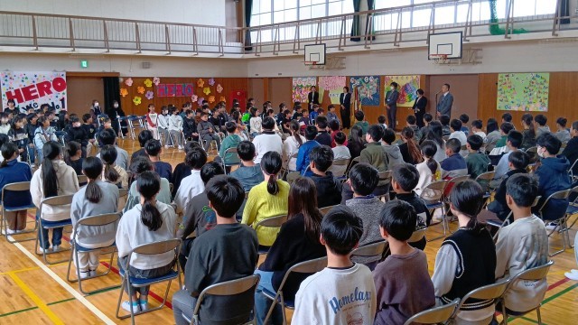 5年生が6年生から最高学年のバトンを引き継ぐ引き継ぎ式。