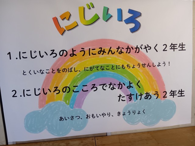 みんな輝く2年生、なかよくたすけあう2年生を目標にがんばります。