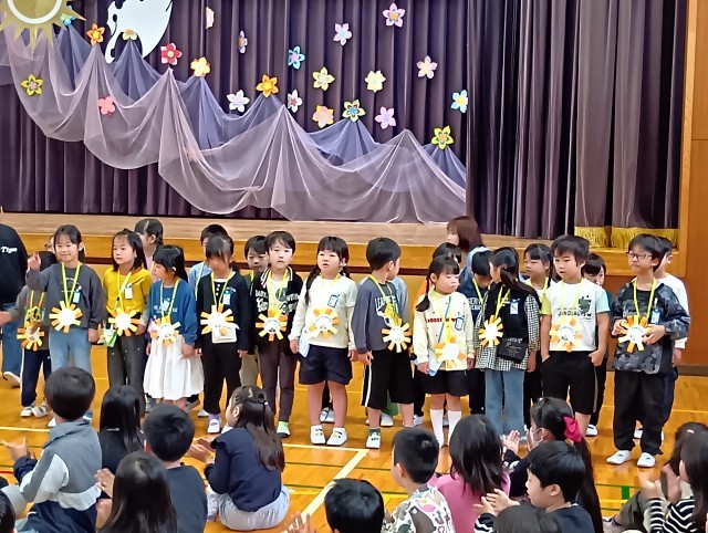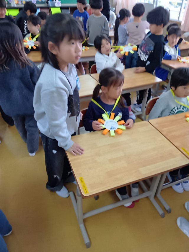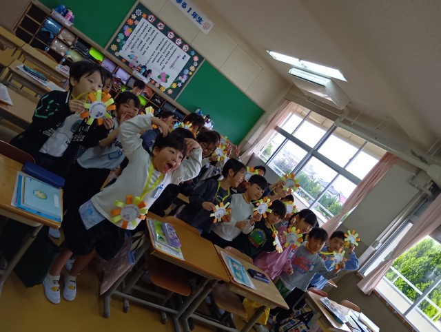 新2年生が1年生の時に作ったものです。メダルを首にかけてもらって、とっても嬉しそうです。