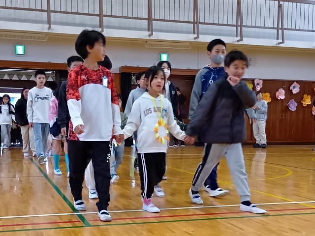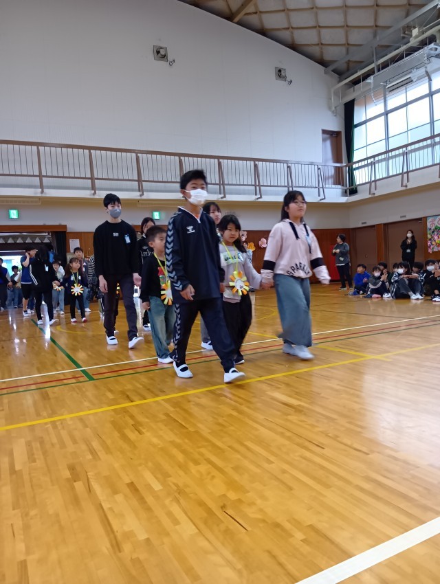この後は、6年生と手をつないで体育館に入場です。1年生も6年生も少し緊張気味です。