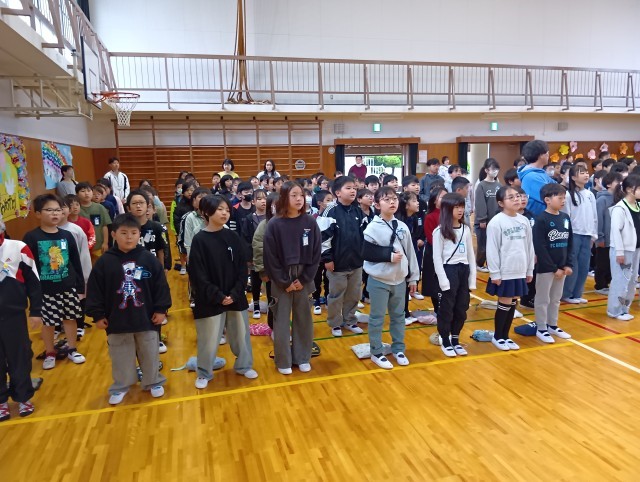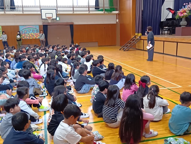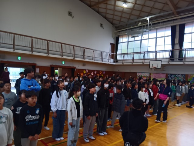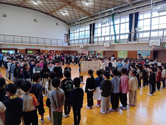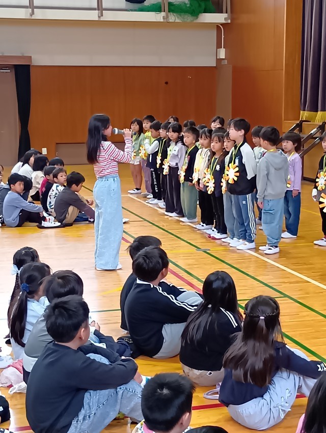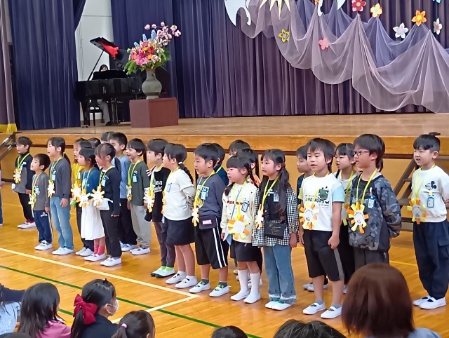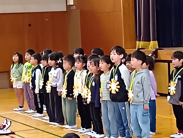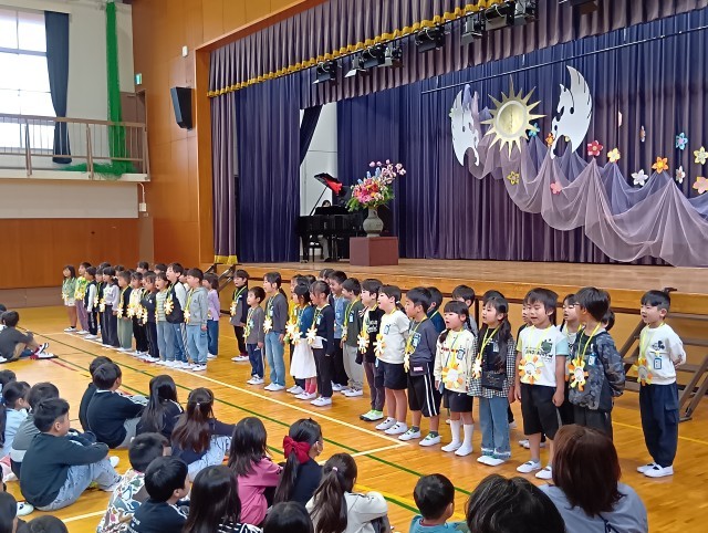 児童会の代表からお祝いの言葉が伝えられ、1年生からは「いちねんせいになったら」の歌とあいさつがありました。
