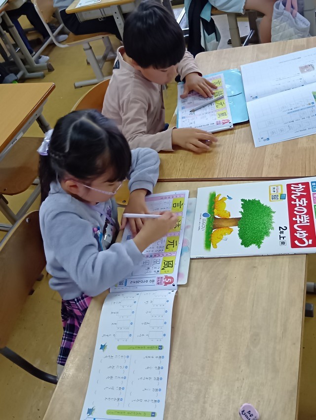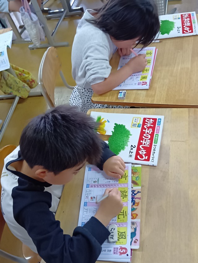 2年生の教室では、漢字の学習が始まっていました。
