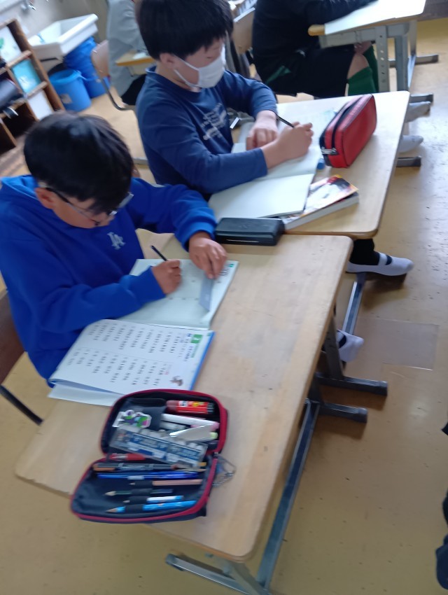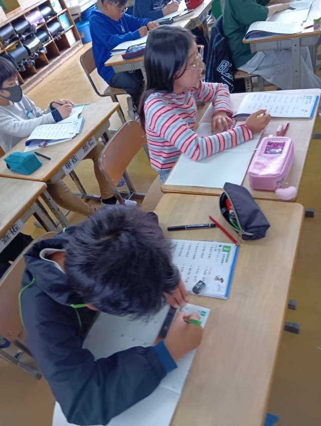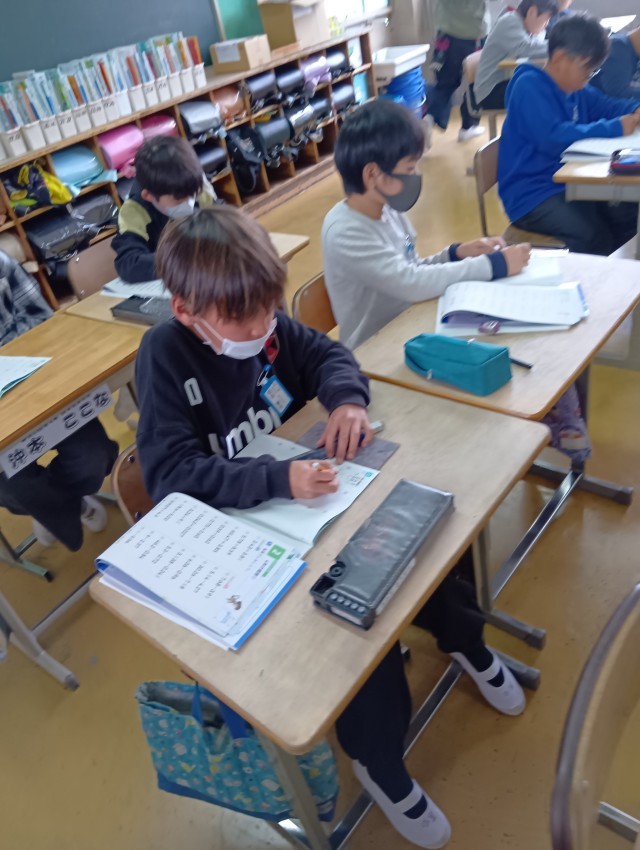 隣のクラスでは、算数で計算ドリルで4年生の復習問題に取り組みました。