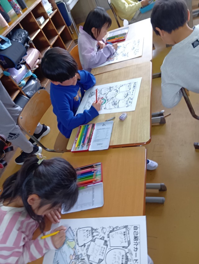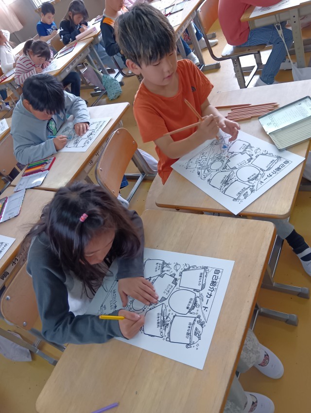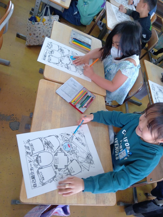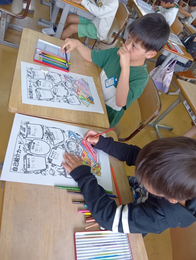 2年生は、自己紹介カードをかいていました。