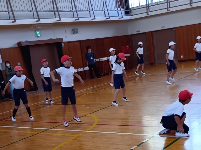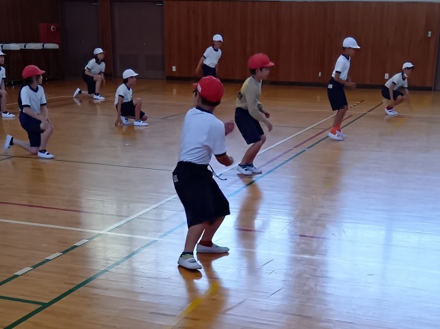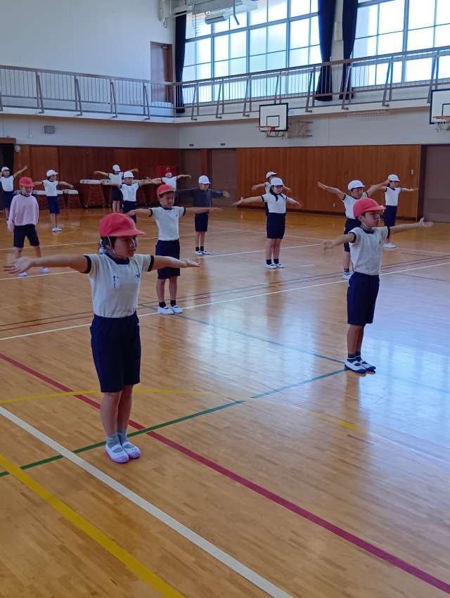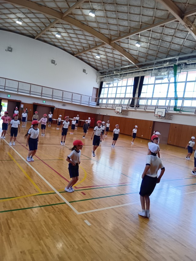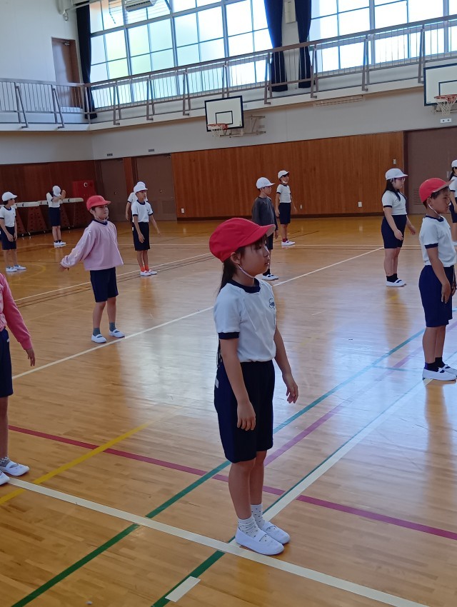 体育館では、きちんと整列して、リズム体操やリズムジャンプをしていました。