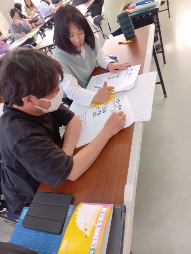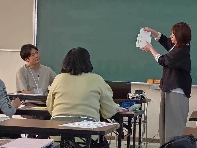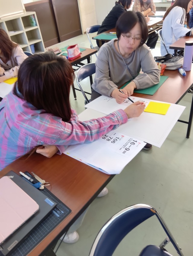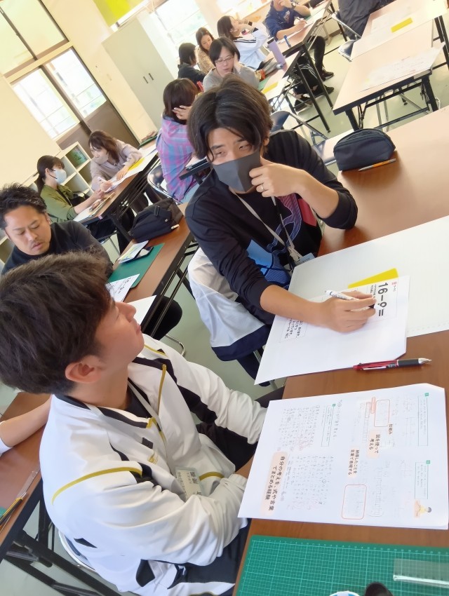 こども役と先生役に分かれて、手立てを考えたり、とっても便利な手作り教具をみんなで作りました。
