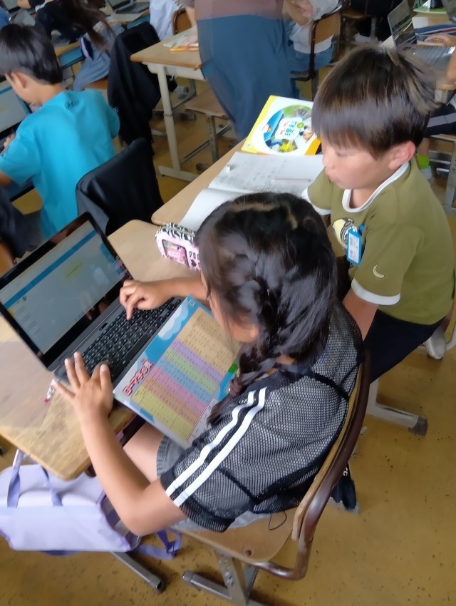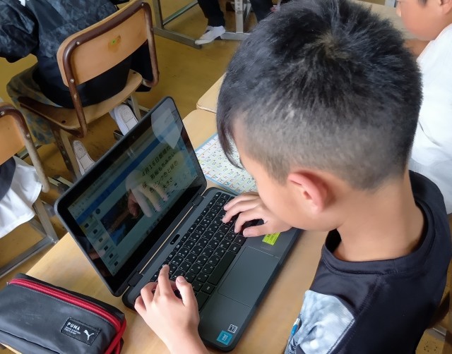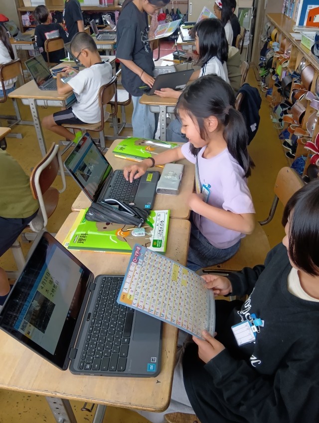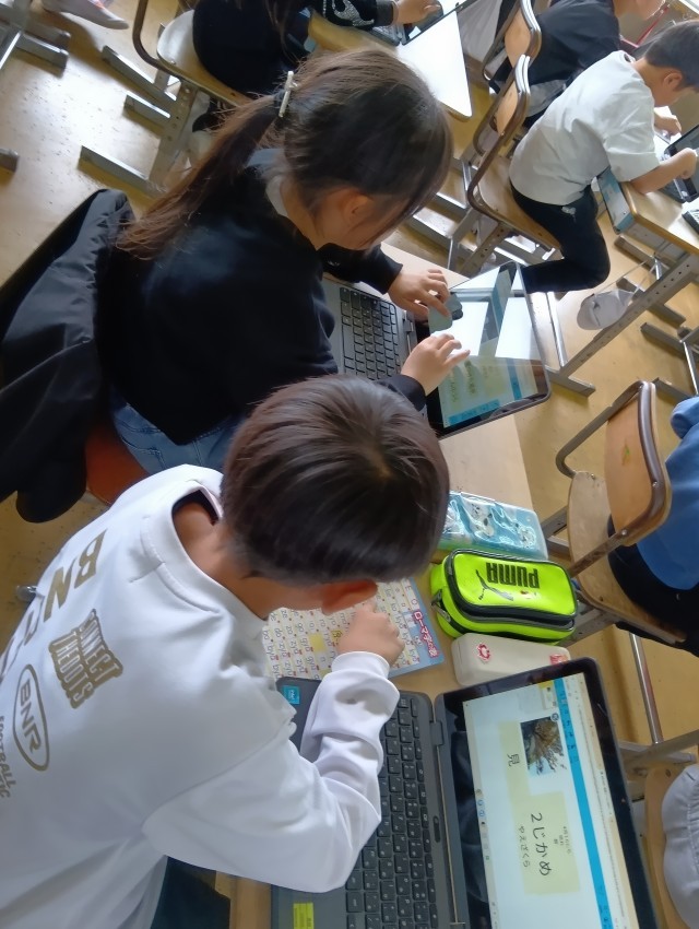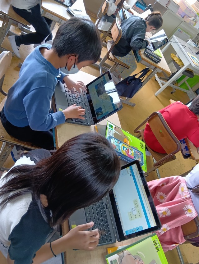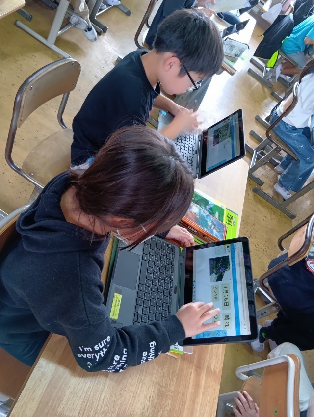 4年生は、タブレットで理科の観察日記を作成中です。