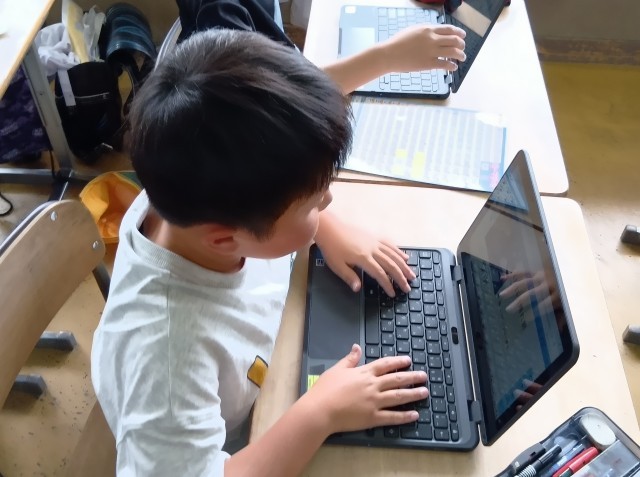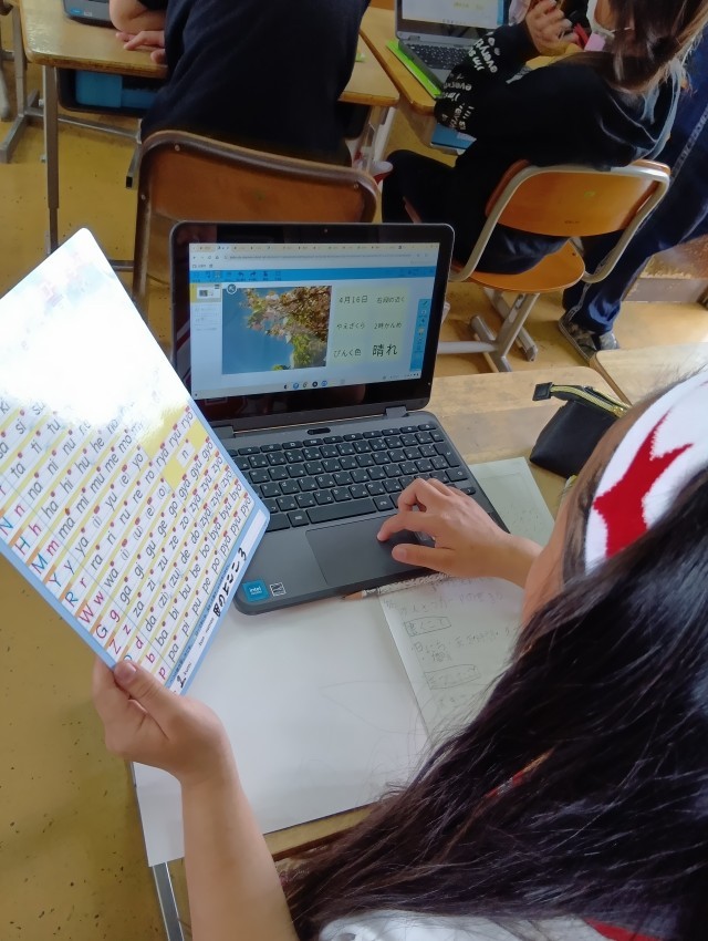 みんな夢中でタブレットに向かいます。素敵な観察日記ができそうですね。