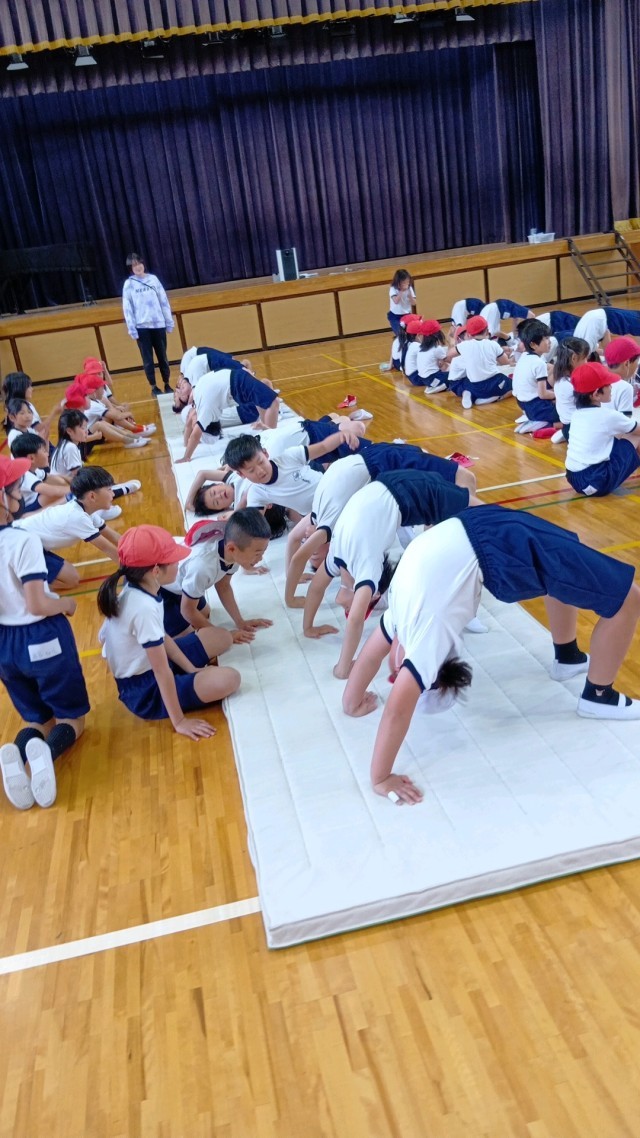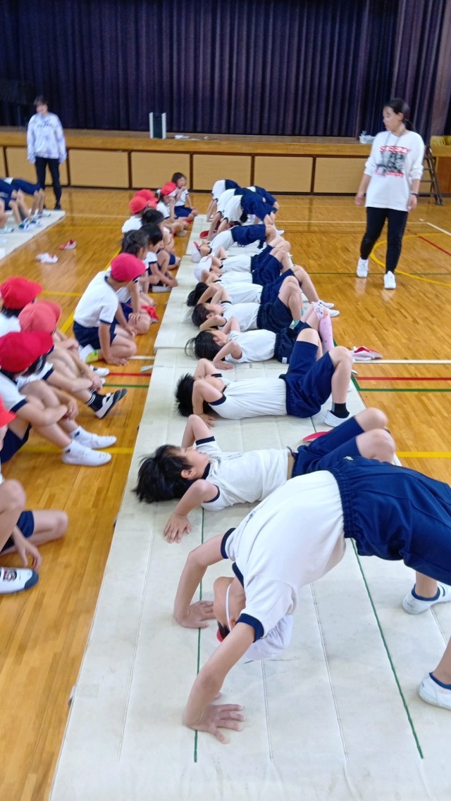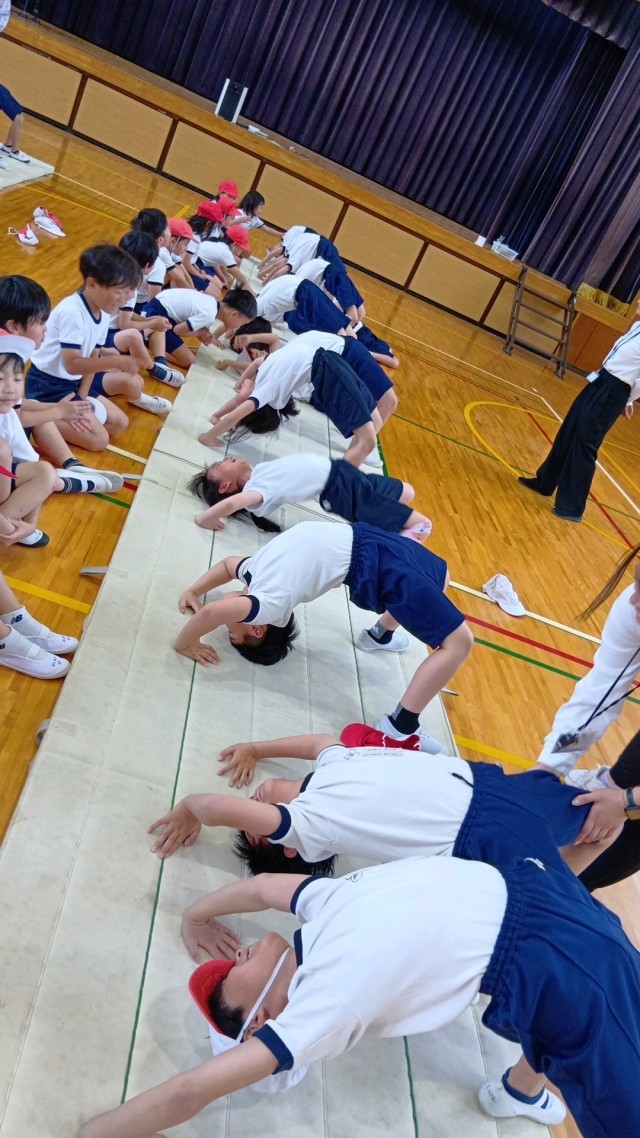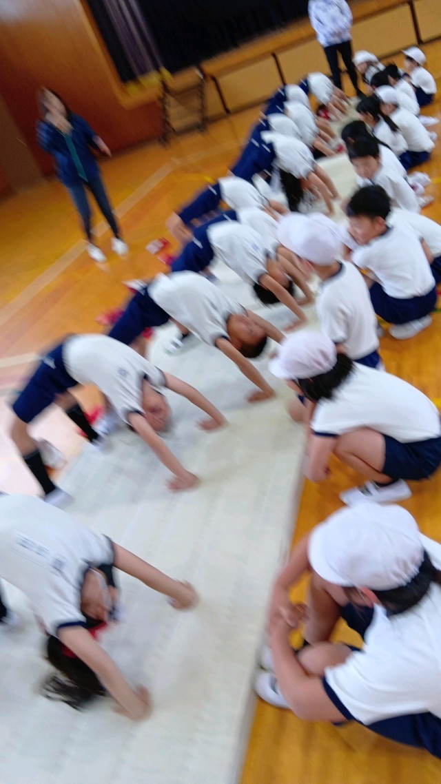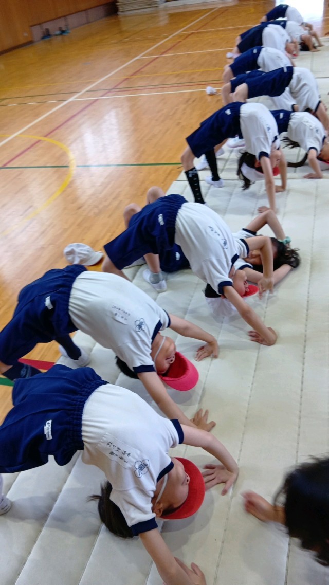 横一列に並んで、先生の合図で一人ずつブリッジしていきます。