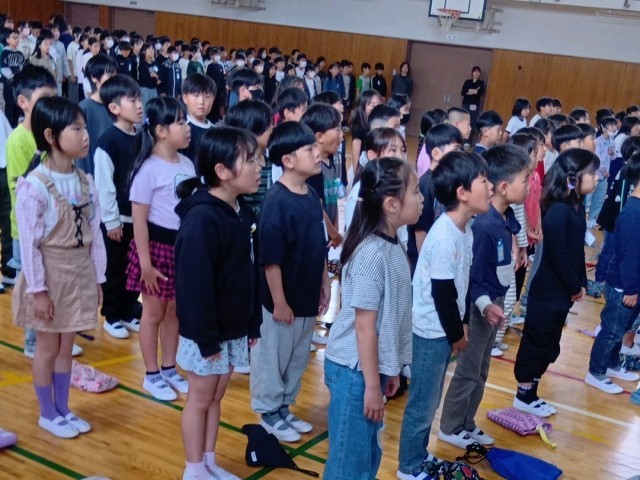 校歌は、1年生もいっしょに歌えるようになっていて、とても素敵な歌声でした。
