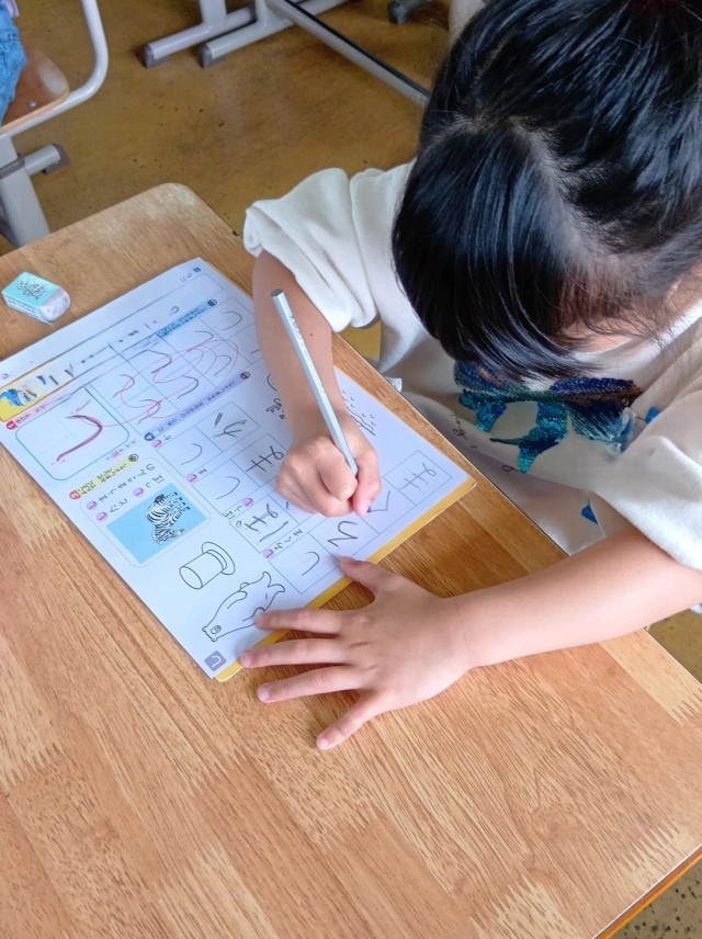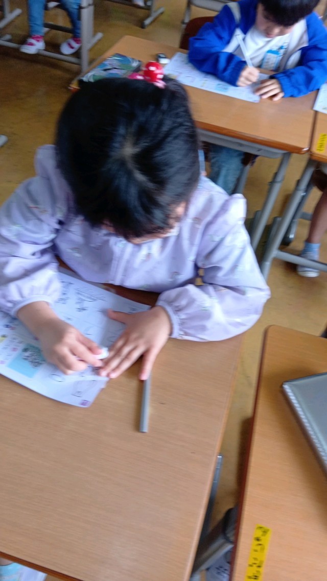 先生のお話を聞く姿勢もばっちりです!はなまる1年生ですね!