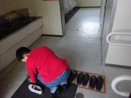 水を使うトイレの掃除は、冬には手がかじかみます。掃除の最後には、スリッパもそろえておきます。