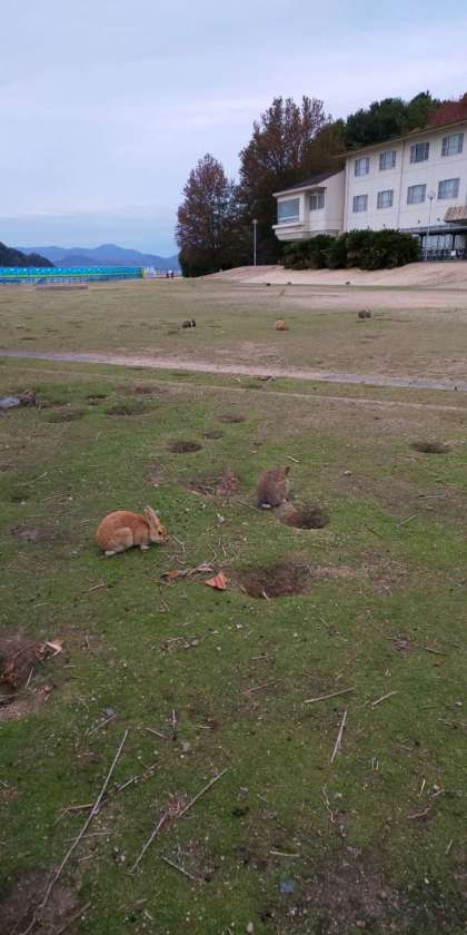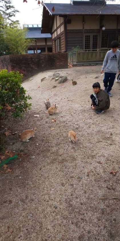 朝から可愛いウサギたちもお出迎え。小さい赤ちゃんウサギもいました。
