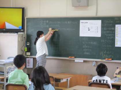 課題の確認をしています。子どもたちが家庭で学習していて分かりにくかったところは、ていねいに説明しています。