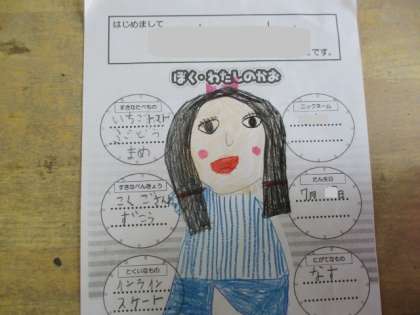 紙いっぱいに描かれた「ぼく・わたしのかお」がステキですね。クラス全員そろって紹介し合える日が待ち遠しいですね。
