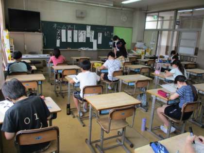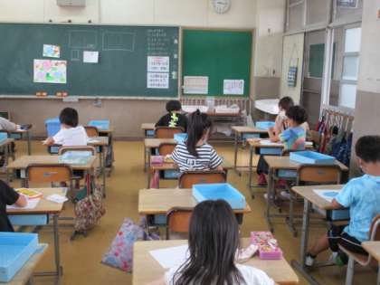 5年生は、図工で『名前アート』に取り組んでいました。2年生はクレパスで思い思いの色を使って紫陽花の花を表現していました。一生懸命塗り込んで「ゆびがつかれたぁ。」と言っている子もいました。