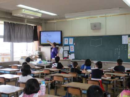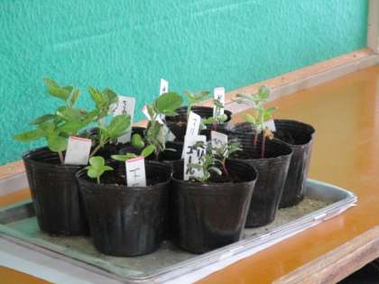 3年生は、友だちが観察で見つけた気付きを先生が紹介していました。ポットの中の苗もだいぶ育ってきました。