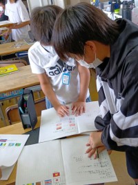 『ノート名人』も増えてきました。2年生の教室前の掲示と、職員室前の6年生の掲示です。