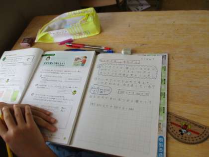 3年生の算数と6年生の算数の時間です。6年生になると、自分なりにまとめ方も工夫しています。