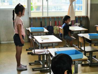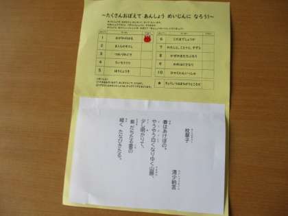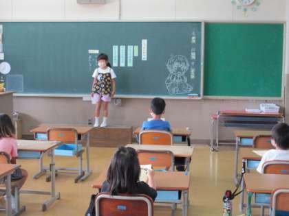 今年度は、全校で名文の暗唱に取り組んでいます。1年生も『あんしょう名人』をめざして、小さいながらも練習を重ねています。