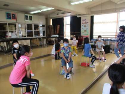 4年生の音楽の時間です。今日は、鑑賞を行っていました。先ずは曲を聴いて曲の特徴やイメージを近くの友だちと伝え合いました。間隔をあけているので、少し話しにくそうです。