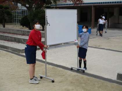 明日の運動会に向けて、6年生、5年生と児童会の4年生が係ごとに準備や練習を行いました。運動会は、このような子どもたちの活動で成り立っています。学年の練習でも疲れていると思うのに、最後までがんばってくれました。みんなのために、どうもありがとう!!