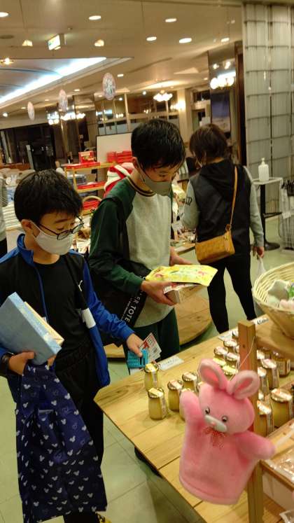 「おばあちゃんってどんなものが好きなんやろう?」「これ妹に」などいろいろ話しながら楽しそうに選んでいました。