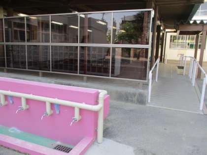 雨風の日も、子どもたちのくつ箱に雨が吹き込まないよう、教育委員会に雨除けの仕切りを設置していただきました。