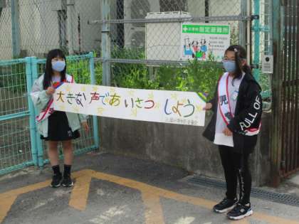 児童会の子どもたちが、朝早く登校し「あいさつ運動」をがんばっています。『児童会新聞』も早くも第1号が発行され、「あいさつ運動」の記事には「自分から元気なあいさつをして、一日を気持ちよくスタートしましょう」とありました。