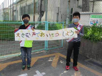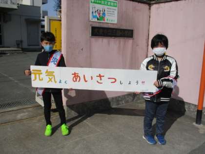 「あいさつ運動」最終日。今日も児童会の子どもたちが元気にあいさつしています。