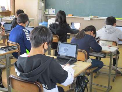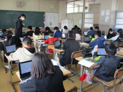 5年生は、eboardを使って、世界と日本の国土について学んでいました。