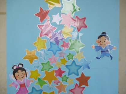 7月になったので、図書室の飾りも七夕バージョンになりました。