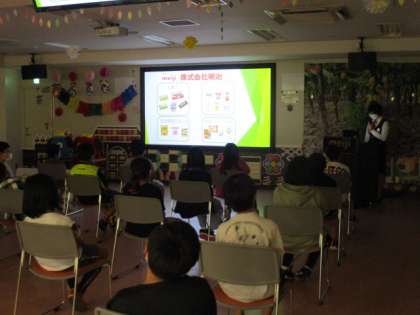 5つのグループに分かれて案内していただいたので、見学の順番は違いましたが、写真はホールで映像を観ながら工場の概要について説明をしてもらっているところです。