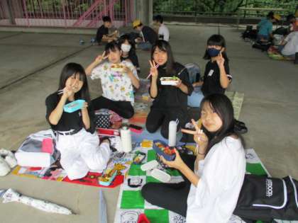 明治の工場を見学したあと、バスで移動し、万博公園でお弁当を食べました。お弁当のご用意、ありがとうございました。