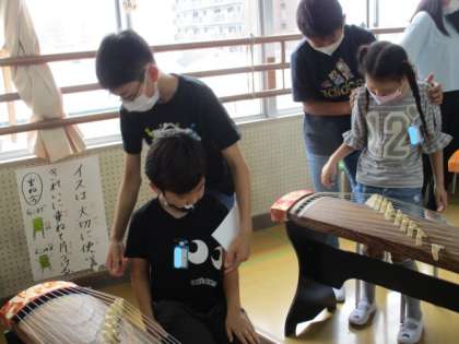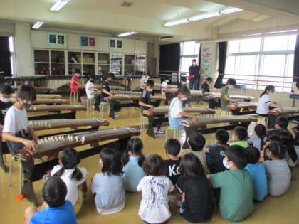お箏についての説明も、とても上手にしてくれました。教えてもらう前には、6年生が『ふるさと』を演奏して聴かせてくれました。さすが6年生の演奏は、音がそろっていてきれいです。