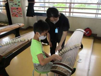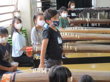体験の終わりに、3年生が「お箏の楽器のことが知れてよかった」「6年生に教えてもらって楽しかった」と感想を述べていました。