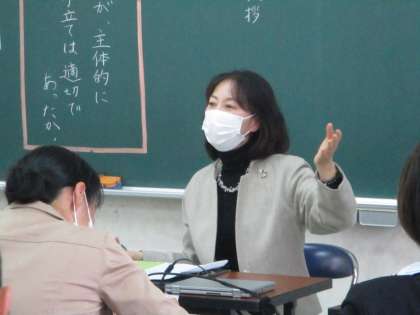 授業のあと、研究協議会をおこない、大本教授から「家庭科」という教科だけにしばられず、家庭科の学習の中で他の教科と結び付けて学習を広げていくことの楽しさについても教えていただくことができました。