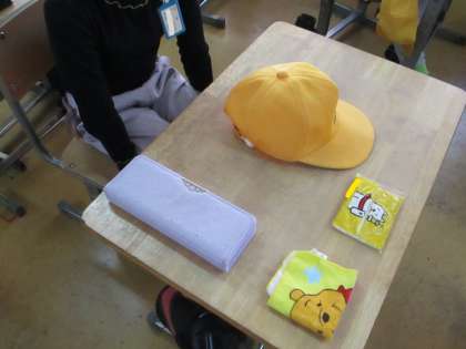 ハンカチ・ティッシュ・黄色帽子・筆箱の中身 等、忘れ物はないか確認します。