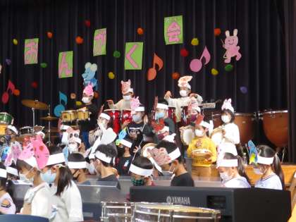 今日は1年生と5年生の音楽会です。1年生は、回を重ねるごとに上手になって余裕が感じられるようになってきました。