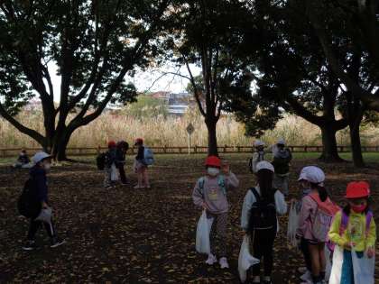 子どもたちが集めてきたどんぐりや落ち葉を使って、図工の作品をつくる予定です。どんなものができるか楽しみです。