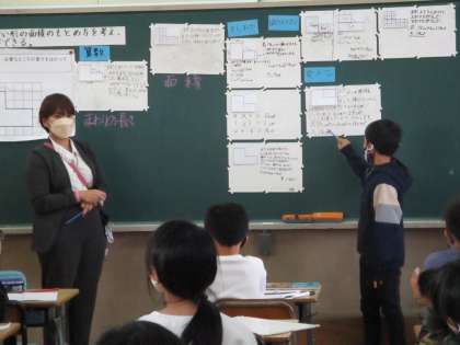 4年生の子どもたちが自然に話し合う雰囲気づくりができていること、また、自分たちの意見と違うところはどこなのかを考えながらしっかりと聞けていることについて、すばらしいですね、と言っていただきました。