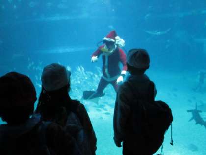 まだ11月ですが、大水槽の中にはサンタさんも登場。テレビの取材も入っていたようです。