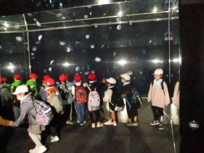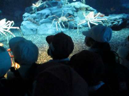 タカアシガニの足の長さにビックリ!! クラゲが浮遊している大きな水槽は、宇宙空間のようでした。
