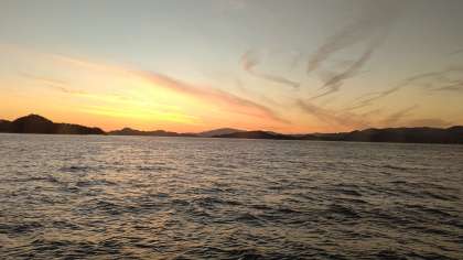 船から見える夕焼けが、とても綺麗です。