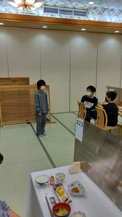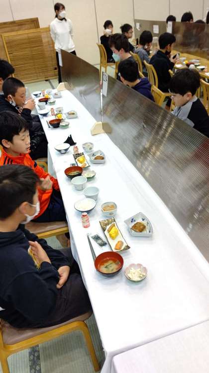 朝食タイムです。初めての宿泊なので、朝の片付けに少し時間がかかったグループもありました。
