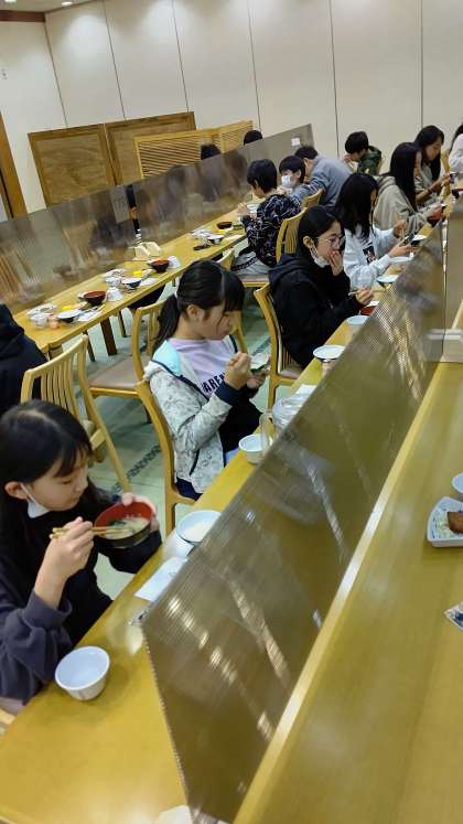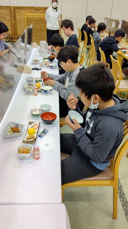 メニューは、和食が基本のお食事です。次々におかわりをする子が出ています。